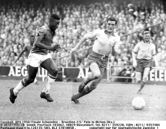 1958年6月29日,1958世界杯决赛,瑞典Vs巴西,未满17岁的贝利崭露头角,决赛下半场第55分钟,球王打进了他那个著名的进球,从头顶挑过后卫,随后凌空抽射将球射入网窝。多年后,球王贝利仍称这个进球是他最难忘的一个,而被他挑球骗过的瑞典后卫帕林也被这个进球折服,赛后称自己当时几乎要冲上去和贝利一同庆祝这精彩的进球。