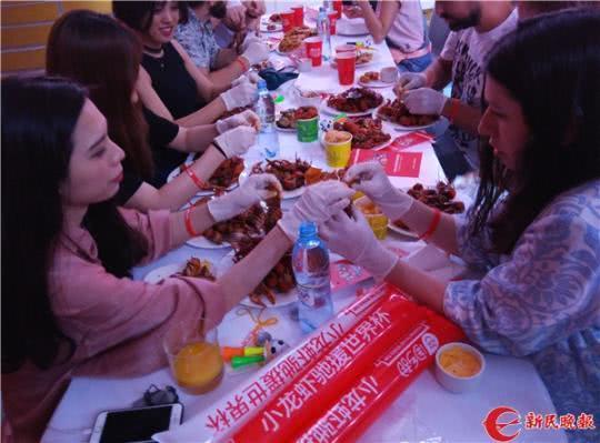 图说:俄罗斯食客正在品尝小龙虾 新民晚报特派记者 关尹 摄