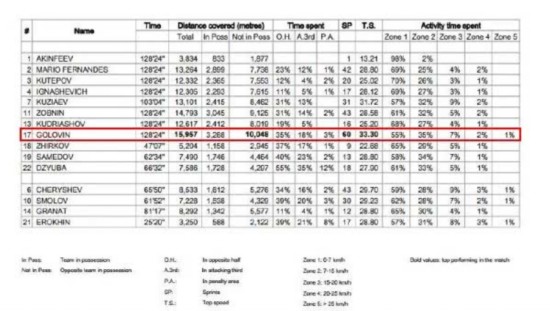 戈洛文单场跑动距离将近16000米,中锋战术不是独立存在的 需要注意的是,中锋球员不该是孤立存在的战术,接应点一定是要配套出现。戈洛文是一名跑动能力极强的球员,他在120分钟的比赛里,跑出了将近15957米的距离。他对于中锋久巴,以及后续替补出场的斯莫洛夫的帮助,是巨大的。