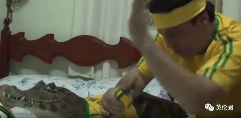 巴西一名球迷的看球方式也是有些特别,作为一名生物学家,该男子家里收集了各种奇奇怪怪的的动物,在观看世界杯期间,他竟然抱着自己最喜欢的一只大鳄鱼一起看球,还给它穿上了巴西球衣。