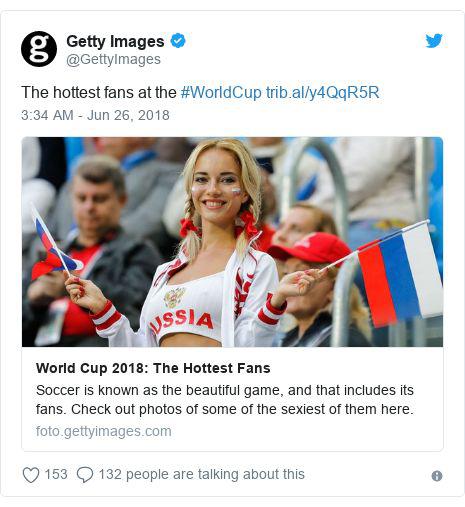 6月26日,Getty Images在社交网站上上传了一组照片,主题为“世界上最火辣的球迷”。照片中呈现的都是年轻漂亮、身着暴露的女性球迷。