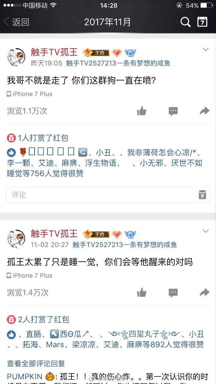 今天看触手刚发现的,主播孤王殿下猝死了,已经9天没直播了,今天刚发现评论说qq说他已经去世了。