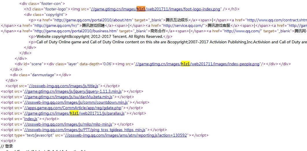 打开页面查看源代码,其中可以发现大量H1Z1关键字。
