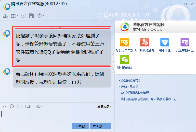 于是。。我们找到了腾讯客服,看看是什么解释!