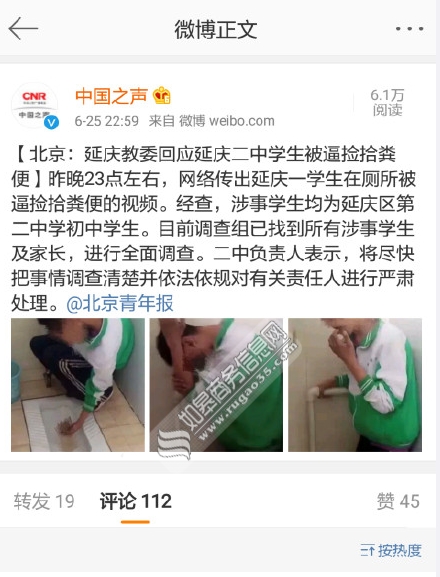 6月24日晚起,一段学生被逼捡拾粪便并吃下的视频在网络热传,引发社会广泛关注。