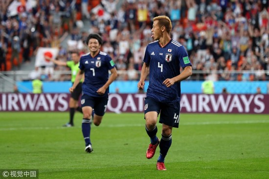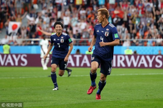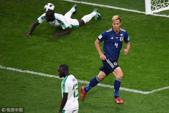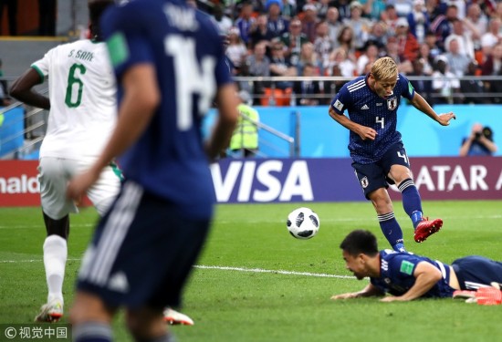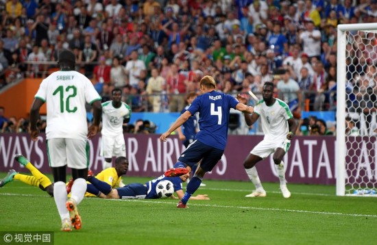 北京时间6月24日,世界杯H组小组赛,日本vs塞内加尔,比赛第78分钟,日本球员本田圭佑和队友配合,最后本田圭佑门前将球推射入网。 |
