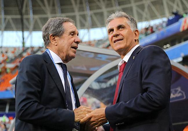 奎罗斯与葡萄牙足协副主席科埃略寒暄
