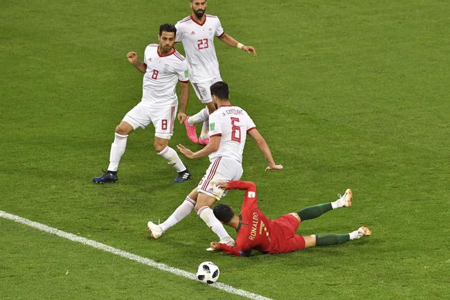 埃扎托拉西解围不远,受到门将贝兰万德训斥 夸雷斯马右路传中,贝兰万德出击没拿到球,险些送给对方机会。安德烈-席尔瓦被阿米里放倒,C罗右侧距门23米处任意球蹭人墙高出。雷扎埃安左侧距门25米处任意球则偏出近角。帕特里西奥出击扑救,头部受到贾汉巴赫什护腿板冲撞,接受治疗后坚持作战。贾汉巴赫什右路任意球传中,埃扎托拉西在门前10米处头球一蹭被帕特里西奥得到。