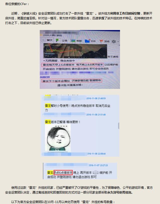 下面整理一波***B腾讯历史 发布到公告成功打击的外挂 如下: