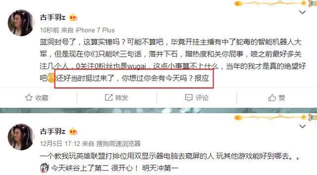 昔日徒弟、在其工作室的古手羽表示:“你想过你会有今天吗?报应!