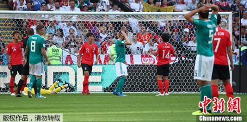 中新网6月27日电 北京时间6月27日晚,2018俄罗斯世界杯F组韩国队与卫冕冠军德国队的比赛在喀山竞技场打响。最终,韩国2:0完胜德国队,在另外一边的比赛中,瑞典3:0完胜墨西哥。瑞典与墨西哥队分列小组第一、第二,携手晋级16强。卫冕冠军德国队遗憾出局。