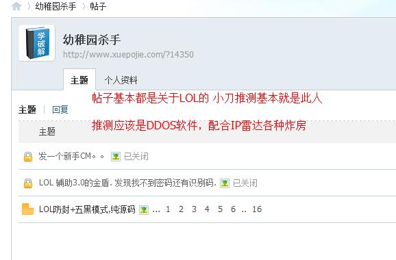 另外我在吾爱发现个关于LOL炸房原理的帖子 有兴趣研究的可以看看:http://dwz.cn/2dQyfi
