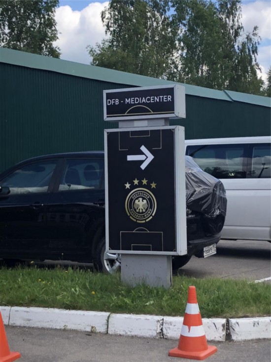 德国驻地标识 而媒体中心相比较以往也有很大的差别。鹅厂记者从2008年开始跟随德国队,每次到驻地第一个看到的就是德国队精心印制的小秩序册。但是这次德国足协居然都没有制作这样的秩序册,只给媒体准备了本届世界杯的纪念笔记本。没有秩序册,真是十年来首次。