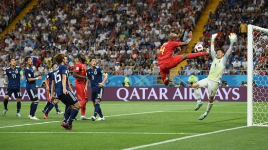 卢卡库错过机会 默尔滕斯右路传中,卢卡库小禁区边缘在吉田麻也防守干扰下错过射门机会。阿扎尔和默尔滕斯连续传球,德布劳内禁区边缘射门被挡。随后阿扎尔左路禁区边缘劲射被川岛永嗣扑出。孔帕尼角球混战中远点钩回皮球,川岛永嗣也被撞出底线外,但并无比利时球员包抄空门。